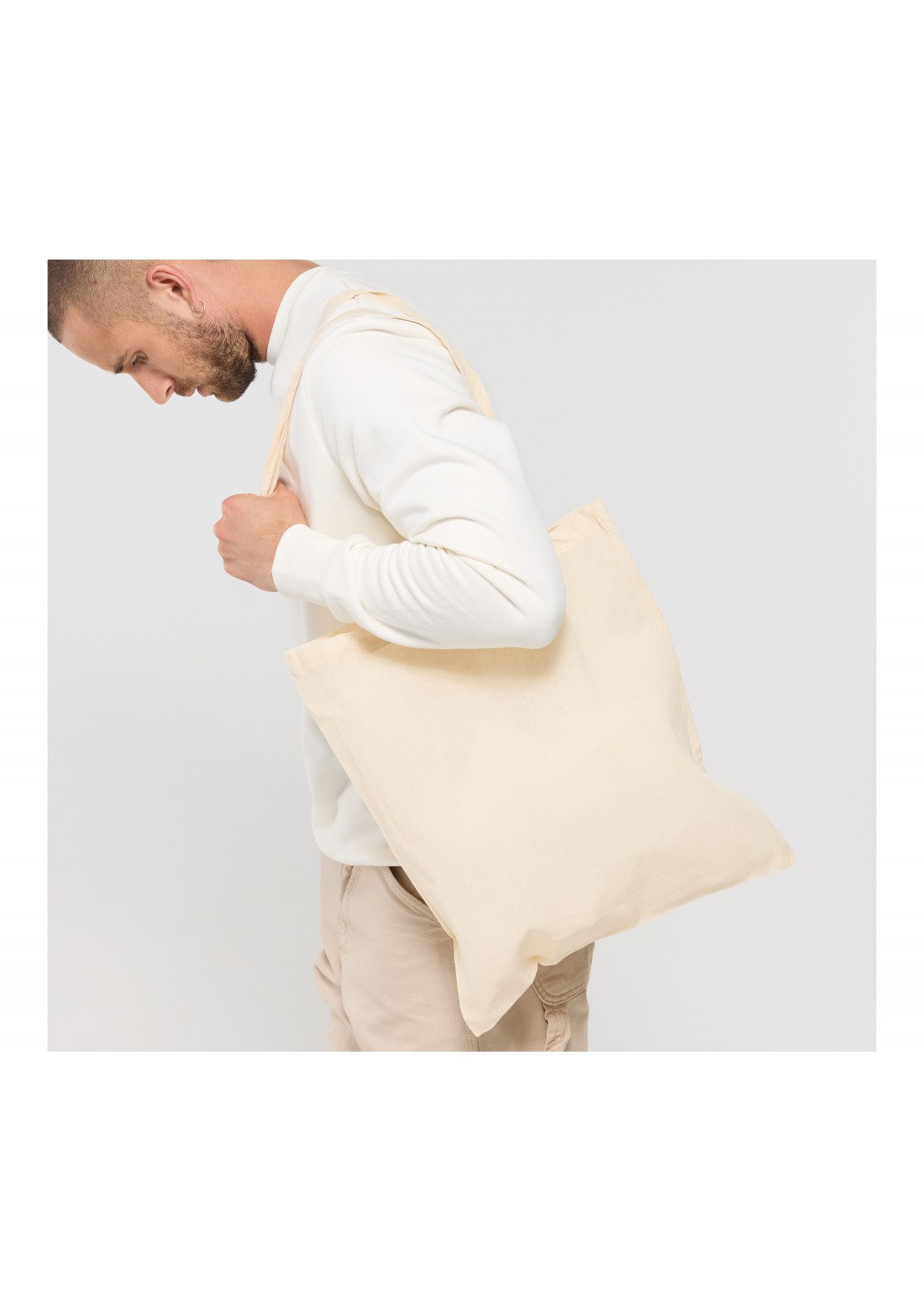 Sac shopper promo en coton léger - Longueur des anses 70cm. Surface d'impression 30x30cm.